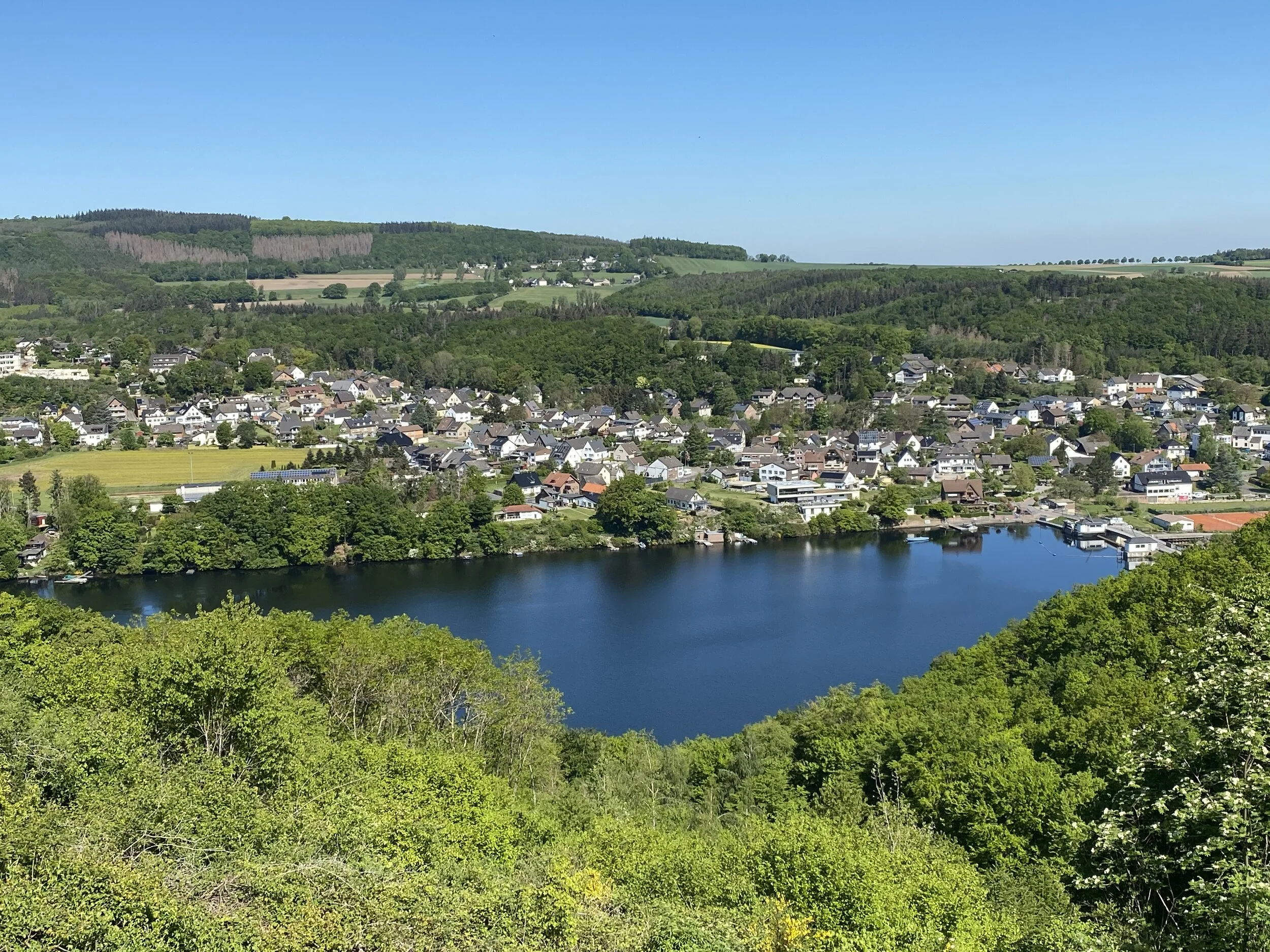 Am Ortseingang von Obermaubach liegt das Café Flink unübersehbar direkt vor dem Damm des Trinkwasserstausees und bietet dem Besucher einen unvergleichlichen Weitblick in das Tal der Rur.